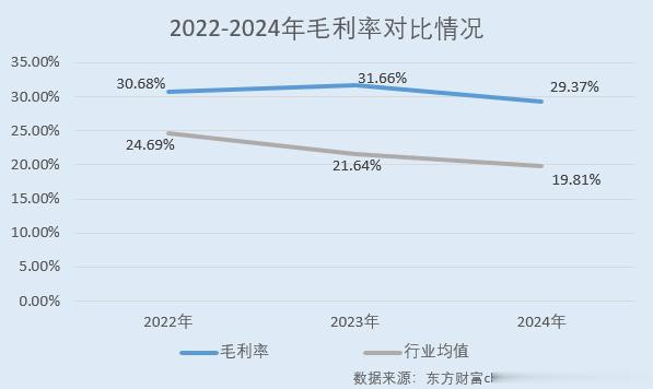 据东方财富choice数据,2022-2024年,常青科技的毛利率分别为30.68%、31.66%、29.37%,ROE分别为25.63%、12.58%、9.11%。
