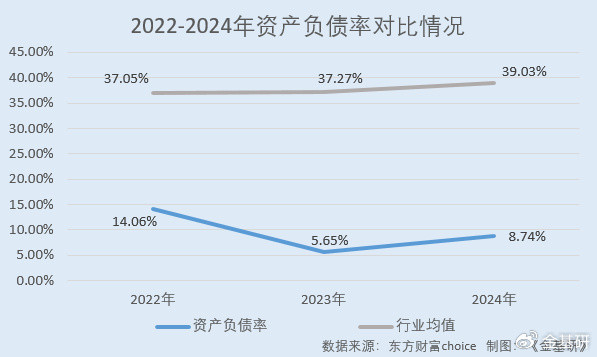 2022-2024年,常青科技的资产负债率分别为14.06%、5.65%、8.74%。同期,证监会行业类“化学原料和化学制品制造业”中372家上市公司的资产负债率均值分别为37.05%、37.27%、39.03%。